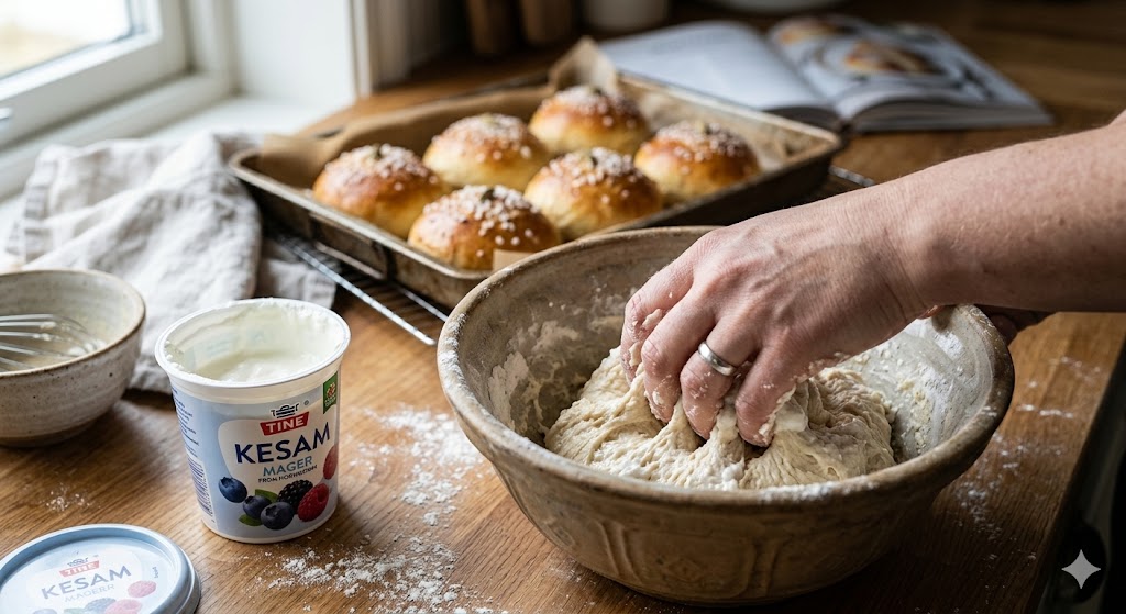 Bruk av kesam i deiger, spesielt gjærbakst, er et velkjent triks blant profesjonelle bakere. Syren og proteinene i kesamen reagerer med melet og gjæren på en måte som gjør baksten ekstremt saftig og holdbar. En mager kesam kan ofte erstatte store deler av smøret i en oppskrift uten at det går på bekostning av smaken, men med en betydelig reduksjon i fettinnholdet. Dette er spesielt effektivt i søt bakst som boller, vafler og pannekaker, men også i rundstykker og brød. Les mer om meieriprodukter og deres kjemiske egenskaper på Wikipedia.